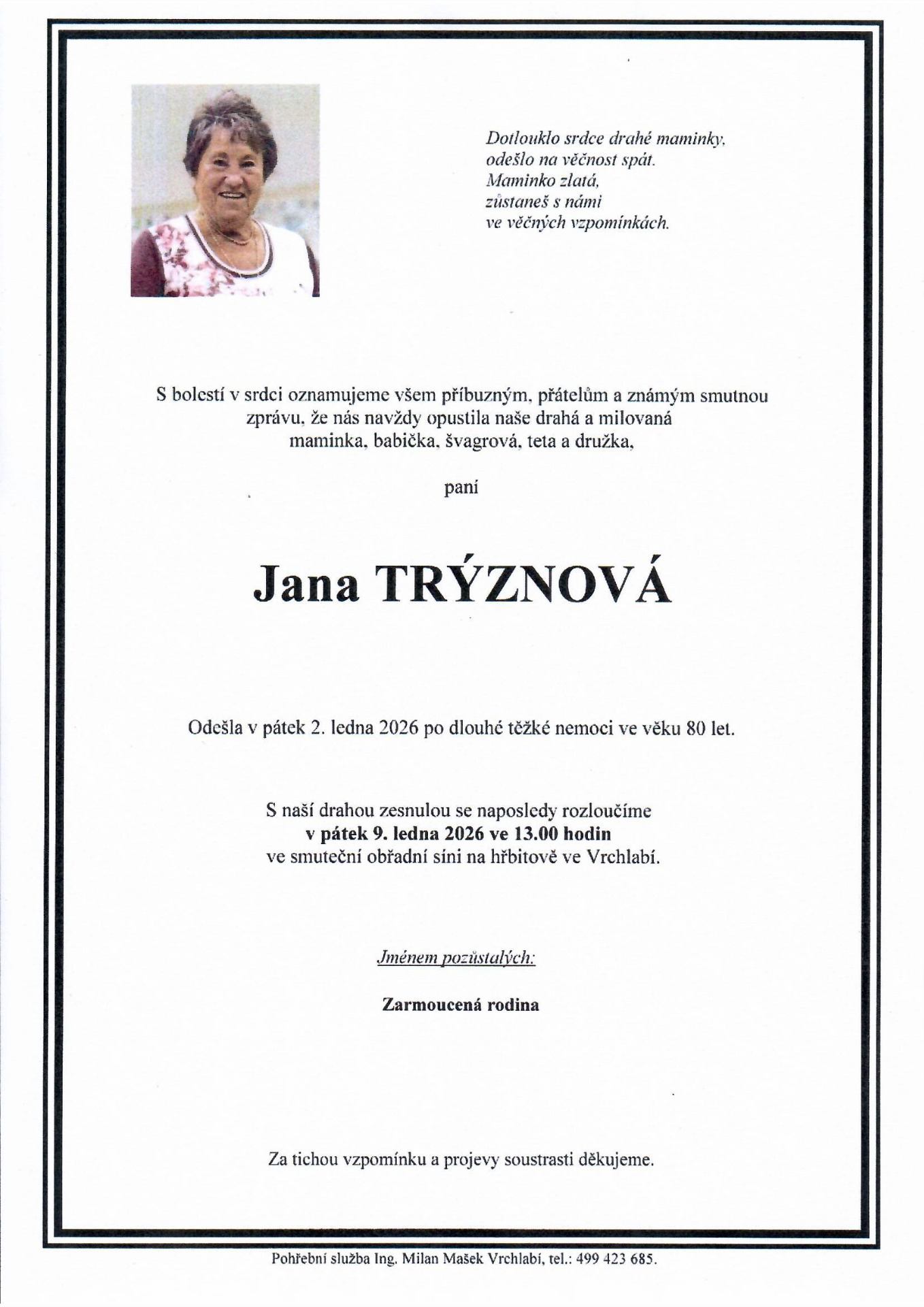 2. ledna 2026 nás opustila dlouholetá členka našeho výkonné výboru, cvičitleka a členka komise cvičení v přírodě Jana Trýznová. Čest tvé památce.